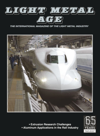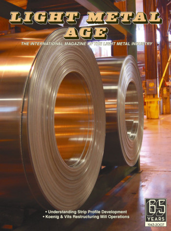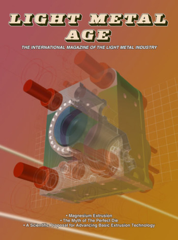 SMS Meer’s Axel Bauer (left), general manager of extrusion press sales, and Uwe Muschalik (right), general manager of hydraulic press R&D and technology, in front of the newly built HybrEx 25, the radically different 25 MN extrusion press designed by the SMS Meer R&D and Technology Group headed by Muschalik. See story on page 24.