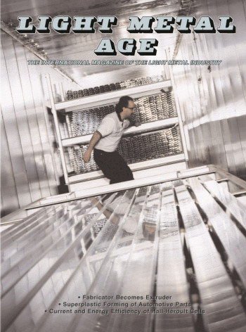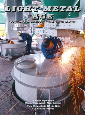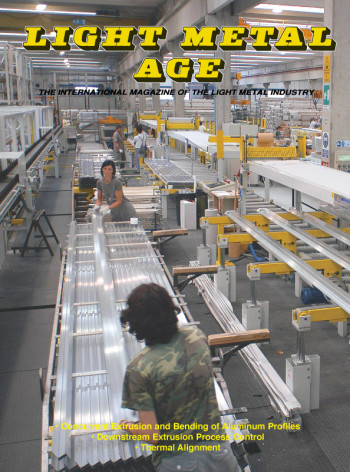 SMS Meer’s Axel Bauer (left), general manager of extrusion press sales, and Uwe Muschalik (right), general manager of hydraulic press R&D and technology, in front of the newly built HybrEx 25, the radically different 25 MN extrusion press designed by the SMS Meer R&D and Technology Group headed by Muschalik. See story on page 24.
