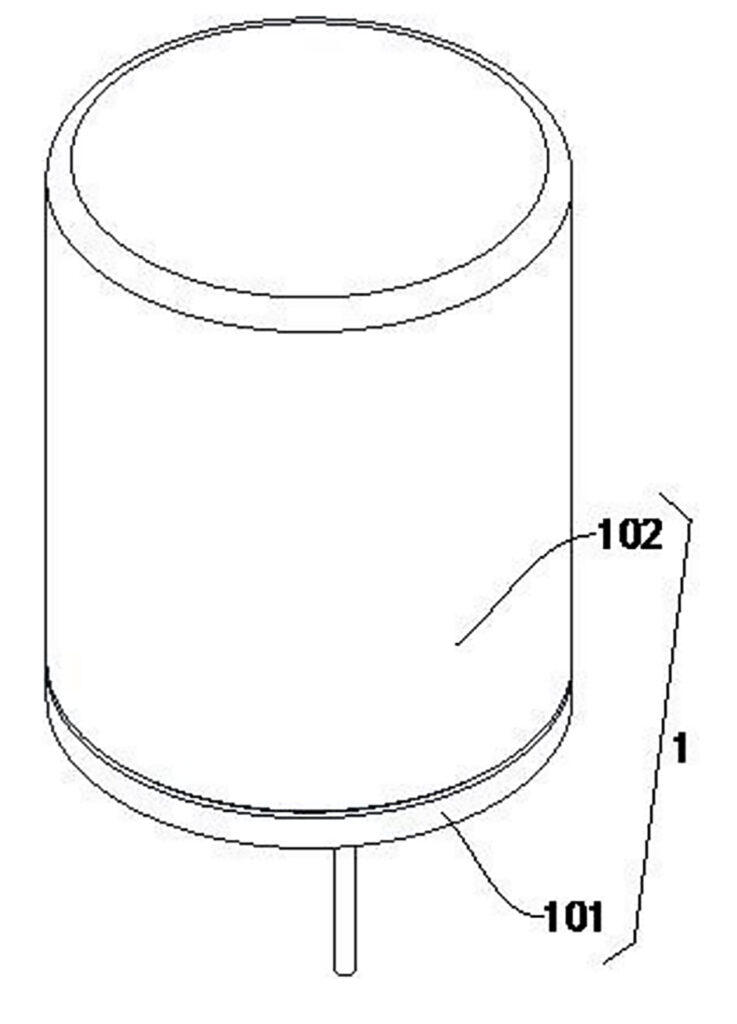 CN119008251B — Flame-retardant aluminum electrolytic capacitors — Nantong Tongrong Electronic Co., Ltd. (China) — The flame-retardant aluminum electrolytic capacitor comprises a sealed shell, in which a first circular plate is fixedly connected, and a first cylinder is coaxially connected to the first circular plate. It actually adopts the design of a sealed shell. When the first cylinder and the first sleeve are separated under the action of the vaporized electrolyte, the electrolyte vapor can enter the sealed shell, driving the driving member to move, and driving the cut-off mechanism and trigger member to move. The first pin is cut off by the cut-off mechanism, and the energy supply of the capacitor is disconnected, so that the capacitor can continue without exploding or burning. Subsequently, multiple air bags are punctured by the trigger member, so that nitrogen and electrolyte vapor are quickly mixed, the oxygen concentration is reduced, and the capacitor core is prevented from burning. Compared with the prior art, it has the advantage of good flame retardant performance and can effectively reduce property losses.