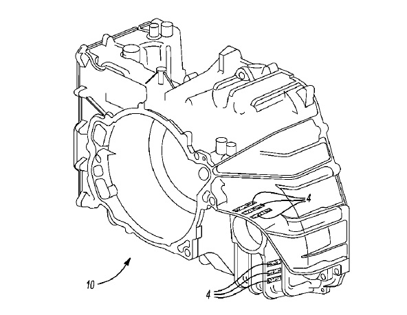 US10001209 — LINEAR EXPANSION REDUCTION OF METAL COMPONENT ASSEMBLIES USING COMPOSITES — GM Global Technology Operations LLC (USA) — The present disclosure relates to minimizing differential thermal expansion of lightweight metal components made of aluminum or magnesium in at least one linear direction by using strategic incorporation of polymeric composites, for example, by incorporating polymeric composites into automotive bearing assemblies having lightweight metal components. Methods of producing an assembly, e.g., a bearing assembly, for a vehicle, with reduced thermal expansion in a linear direction as well as methods for minimizing linear thermal expansion in an assembly, are provided. The assembly has at least two components with substantially different linear coefficients of thermal expansion (CLTEs). The assembly has a lightweight planar metal component (e.g., a housing) with a first CLTE, a second component (e.g., a bearing component) having a second CLTE, and a polymeric composite with a third CLTE. The first CLTE is greater than the second CLTE. The third CLTE is less than or equal to the second CLTE, so that the polymeric composite structure attached to the first planar metal component reduces thermal expansion of the first planar metal component in at least one linear direction and minimizes separation of the second surface of the first planar metal component from the second component.
