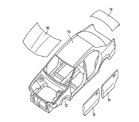 US10022912 — ADDITIVE MANUFACTURING OF A UNIBODY VEHICLE — GM Global Technology Operations LLC (USA) — Methods for manufacturing structures are provided. The methods include manufacturing a shell structure by additive manufacturing methods and sectioning panels with predetermined shapes from the shell structure. Either polymers or metals may be used to create solid structures via additive manufacturing. Non-limiting examples of additive manufacturing processes include fused deposition modeling and selective laser sintering with polymers, such as thermosets and thermoplastics; stereolithography, continuous liquid interface production technology, or other technologies that rely on UV curable polymers; fused deposition modeling with composite polymers; direct metal laser sintering, electron beam direct metal melting systems, blown powder directed energy deposition, wire-fed directed energy deposition, and liquid metal 3D printing system with “MagnetJet” technology with metals, such as aluminum alloys, titanium alloys, and steel alloys. Moreover, a plurality of materials may be deposited at different locations of an object being built by a single machine The panels are subsequently coupled to a shell structure. Devices for performing various steps of the methods are also provided.
