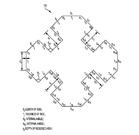 US9944323 — TWENTY-FOUR-CORNERED STRENGTHENING MEMBER FOR VEHICLES — Ford Global Technologies, LLC (USA) — It is desirable, for vehicle strengthening members, to maximize impact energy absorption and bending resistance while minimizing mass per unit length of the strengthening member. Impact energy absorption may be maximized, for example, by assuring that the strengthening member compacts substantially along a longitudinal axis of the strengthening member upon experiencing an impact along this axis. Such longitudinal compaction may be referred to as a stable axial crush of the strengthening member. A strengthening member for a motor vehicle and a vehicle including a strengthening member are provided. The strengthening member can have a cross-section that has twenty-four corners and includes sides and corners creating sixteen internal angles and eight external angles. The vehicle may include a strengthening member that has twenty-four corners and includes sides and corners creating sixteen internal angles and eight external angles.