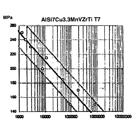 US9982328 — CASTING MADE FROM ALUMINIUM ALLOY, HAVING HIGH HOT CREEP AND FATIGUE RESISTANCE — Rio Tinto Alcan International Limited (Canada) — The subject of the invention is a cast part with high static mechanical strength, and for fatigue and hot creep, made of aluminum alloy of composition: Si: 3-11%, preferably 5.0-9.0% Fe<0.50%, preferably <0.30%, preferably still <0.19% or even 0.12% Cu: 2.0-5.0%, preferably 2.5-4.2%, preferably still 3.0-4.0% Mn: 0.05-0.50%, preferably 0.08-0.20% Mg: 0.10-0.25%, preferably 0.10-0.20% Zn: <0.30%, preferably <0.10% Ni: <0.30%, preferably <0.10% V: 0.05-0.19%, preferably 0.08-0.19%, preferably still 0.10-0.19% Zr: 0.05-0.25%, preferably 0.08-0.20% Ti: 0.01-0.25%, preferably 0.05-0.20% other elements <0.05% each and 0.15% in total, the rest aluminum. It more particularly relates to cylinder heads for supercharged diesel or petrol internal combustion engines.
